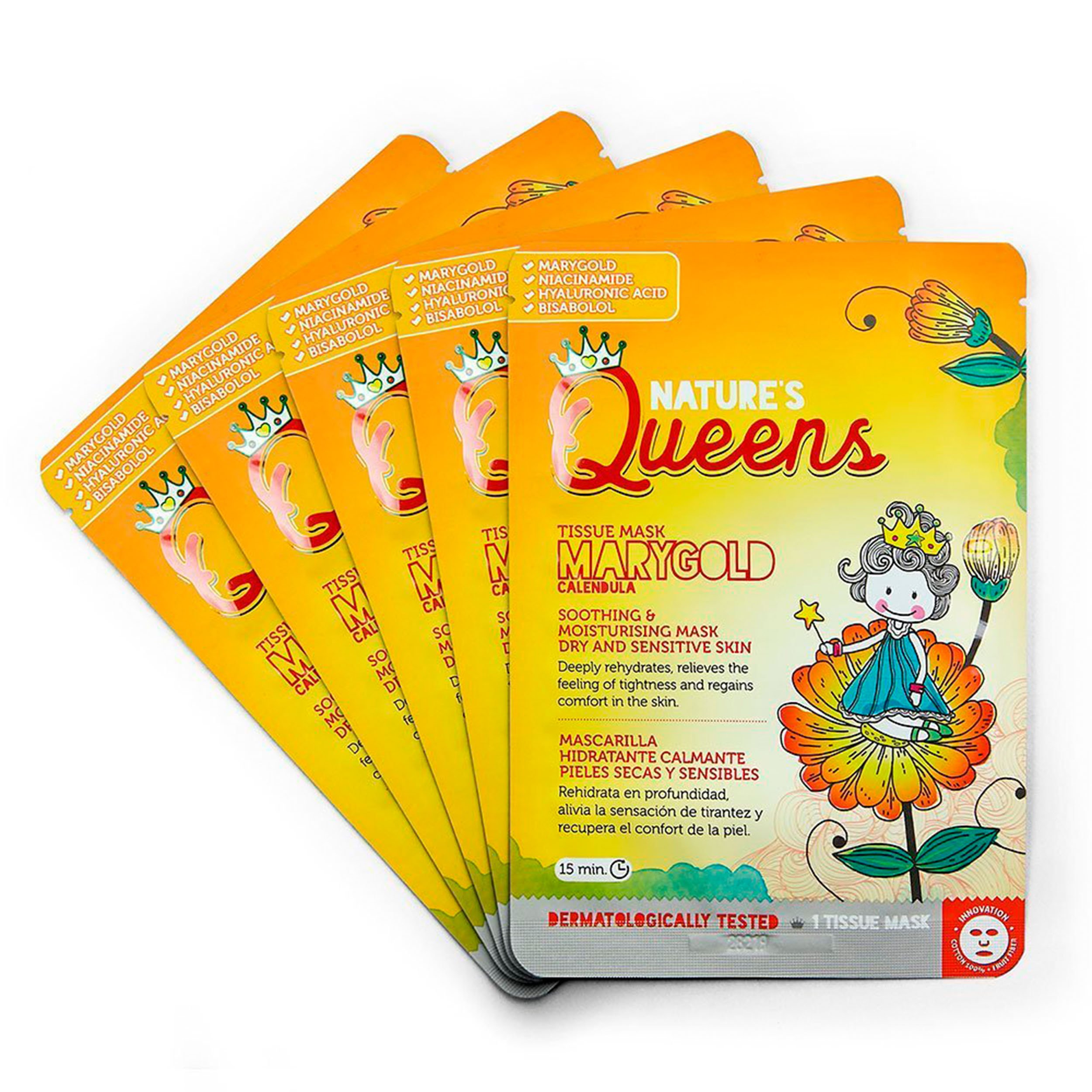 Mascarilla Tisú Calmante. Una mascarilla facial de tejido innovador impregnado con un serum hidratante concentrado, adecuada para pieles secas y sensibles. Contiene Caléndula, planta aromática con flores amarillo anaranjado, rica en aceites esenciales y compuestos antiinflamatorios e hidratantes. Con activos que rehidrata a profundidad, alivian la sensación de tirantez y recuperan el confort de la piel.