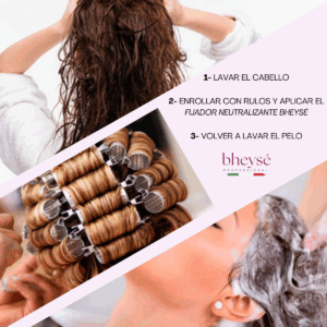 1. Lava tu cabello. 2. Enrolla el cabello con rulos y aplica el Fijador Neutralizante