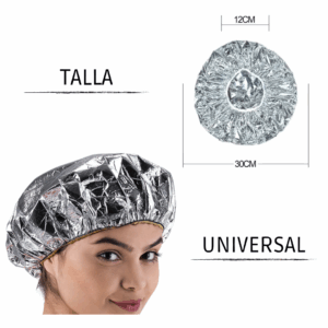 Este gorro térmico de aluminio Térmico se utiliza para colocar sobre la cabeza y concentrar el calor para acelerar y homogeneizar los procesos, mascarillas, tratamientos, henna, etc.