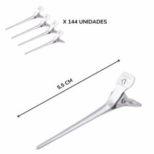 Cajita de 144 pinzas de 5,5 cm de longitud. Hechas de aluminio para una mayor resistencia y duración.